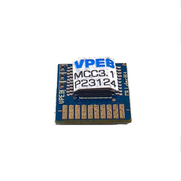 Miniaturwelt trifft man immer häufiger auf fahrende Modellautos. In den meisten Fällen werden die Autos mittels einer Stahl- oder Magnetbandführung gesteuert, der ein Magnet in der Lenkvorrichtung des Autos folgt. Das Dinamo/MCC-System bietet die Möglichkeit, solche Autos auf fortschrittliche Weise zu steuern. Zu diesem Zweck werden die Autos mit einem Decoder ausgestattet, der über ein drahtloses Übertragungssystem im Straßenbelag Befehle empfängt. Bei den Fahrzeugen kann es sich um bestehende, fahrende Analogfahrzeuge handeln, die zu digitalen Dinamo/MCC-Modellen umgebaut werden, oder um Fahrzeuge auf Basis von Standmodellen, die mit Motor, Akku, Lenkung und digitaler Steuerung ausgestattet werden. Zu den Steuerungsmöglichkeiten eines mit Dinamo/MCC digitalisierten Fahrzeugs gehören: • Geschwindigkeitsregelung mit 15 Einstellungen (Stufen) • Lastregelung • Automatisch verzögertes Anfahren und Bremsen mit verschiedenen Eigenschaften • Steuerung von Scheinwerfern, Bremslichtern, Rücklichtern, Blinkern und verschiedenen Zusatzfunktionen. MCCdec03 ist technologisch gesehen eine Weiterentwicklung von MCCdec01. MCCdec03 arbeitet direkt mit der Akkuspannung. MCCdec03 wurde mit Blick auf möglichst geringe Abmessungen bei gleichzeitig höchstmöglicher Funktionalität entwickelt. MCCdec03 ist für die Verwendung mit LiPo-Akkus optimiert, da diese derzeit das günstigste Verhältnis von Kapazität zu Volumen für den Einsatz in kleinen Fahrzeugen bieten. MCCdec03 erfordert eine Mindestakkuspannung von 2,9 V. Abmessungen: 12,1 x 11,8 x 3,5 mm |